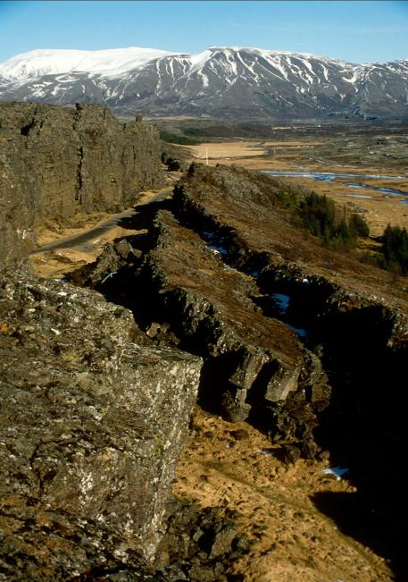 Die kilometerlange Allmännerschlucht "Almannagja" im Žingvellir, alte Tektonik-Spalten